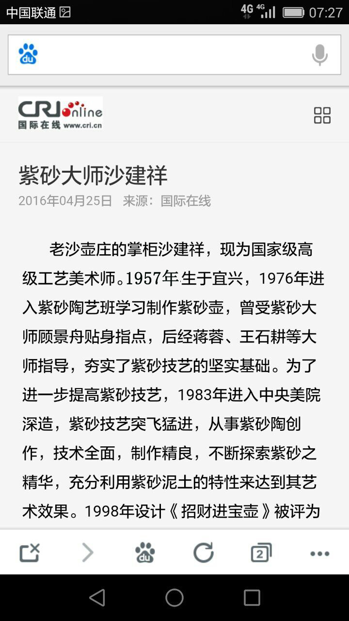沙建祥,1957年10月生于江苏宜兴,自1978年进入宜兴紫砂工艺厂学艺,经吴云根先生点拨学习紫砂成型艺术。